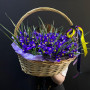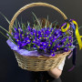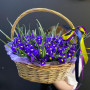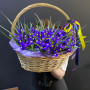 101 синий ирис в плетенной корзине в Усолье-Сибирском