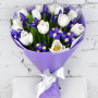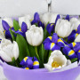Букет из синих ирисов и белых тюльпанов в Усолье-Сибирском