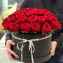 На фото розы в черной коробке. В составе: роза 37 шт, шляпная коробка (m) 1 шт, атласная лента 1 шт, . Все цветы свежие и ароматные, букет красиво оформлен и отлично подходит для подарка. Доступна доставка цветов или самовывоз.